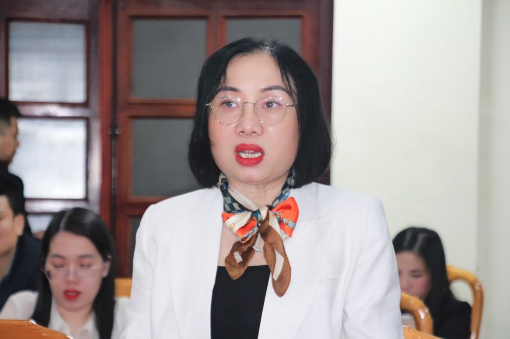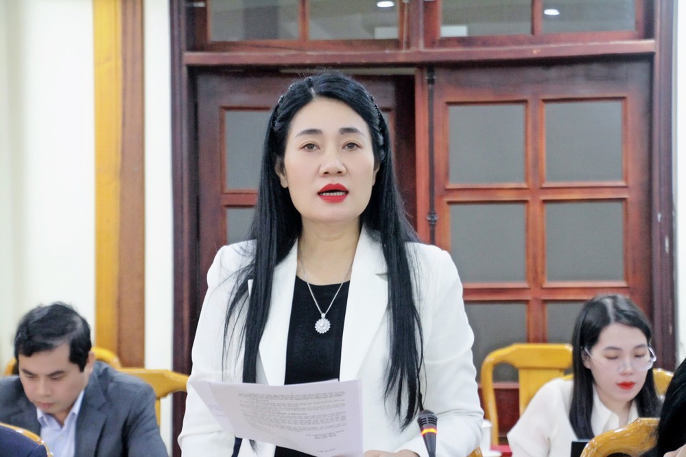 Trưởng ban Văn hóa - Xã hội Hội đồng nhân dân tỉnh Đào Thị Anh Nga phát biểu tại cuộc họp. |