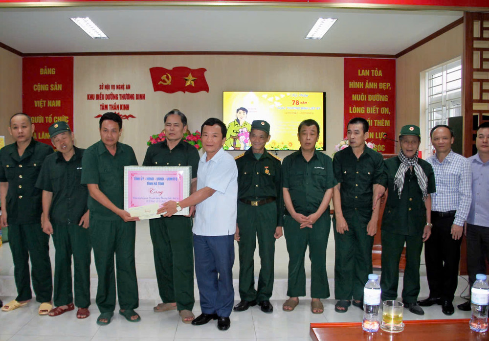 Phó Chủ tịch HĐND tỉnh Trần Văn Kỳ và lãnh đạo các sở, ngành trao quà cho các thương bệnh binh tại Trung tâm Điều dưỡng thương binh Nghệ An … |