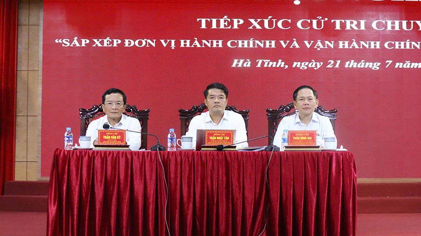 Cũng tại hội nghị, cử tri bày tỏ vui mừng, phấn khởi trước những quyết sách mang tính lịch sử vừa được Đảng, Nhà nước, Quốc hội quyết định trong thực hiện cuộc cách mạng tinh gọn, sắp xếp bộ máy; tin tưởng và kỳ vọng những quyết sách này sẽ đưa đất nước có những bước phát triển đột phá, đạt được những thành tựu to lớn, toàn diện trong kỷ nguyên mới – kỷ nguyên vươn mình của dân tộc. Bên cạnh đó, cử tri cũng phản ánh một số khó khăn, vướng mắc liên quan đến vận hành của chính quyền địa phương 2 cấp, nhất là đối với cấp xã cần sớm được giải quyết. Cử tri Hà Tĩnh đề nghị Trung ương cho chủ trương ủy quyền và giao cấp tỉnh điều chỉnh địa giới hành chính quy mô diện tích nhỏ ở cấp phường, xã; xem xét tăng biên chế theo số lượng tổ chức đảng và đảng viên ngoài số biên chế hiện nay.