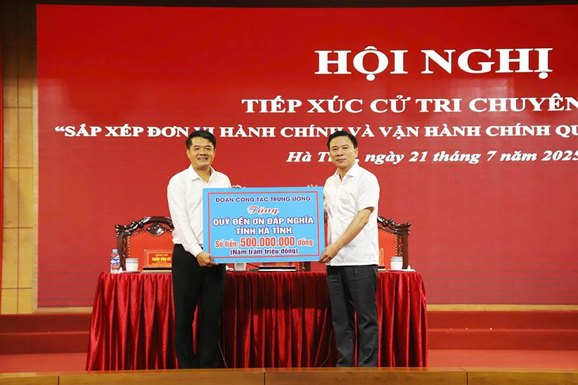 Cũng tại hội nghị, đoàn công tác Trung ương đã trao tặng 500 triệu đồng cho Quỹ Đền ơn đáp nghĩa tỉnh Hà Tĩnh.