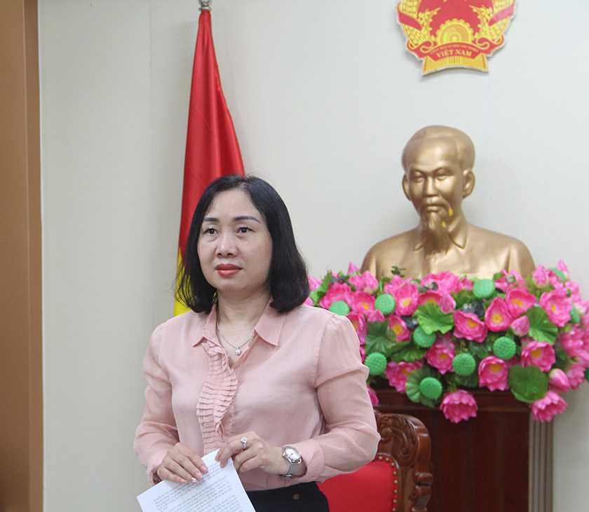 | Trưởng Ban Kinh tế - Ngân sách HĐND tỉnh Nguyễn Thị Thúy Nga phát biểu kết luận tại buổi làm việc |