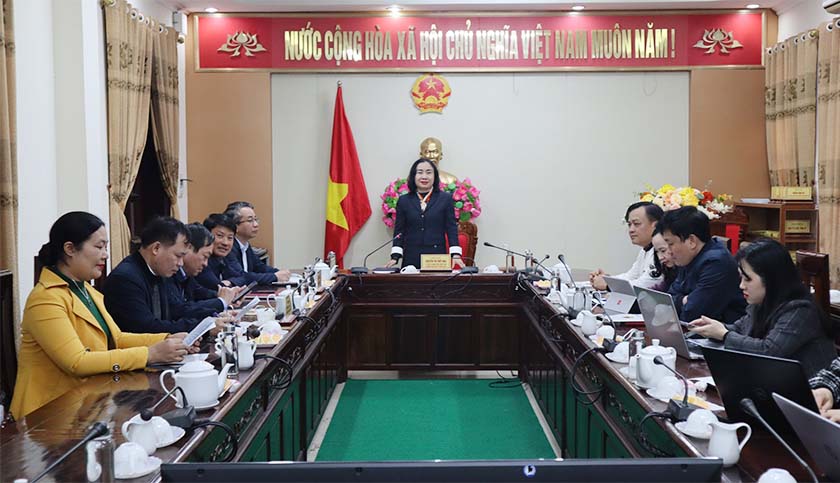 | Trưởng ban Kinh tế - Ngân sách HĐND tỉnh Nguyễn Thị Thúy Nga phát biểu kết luận tại cuộc làm việc |