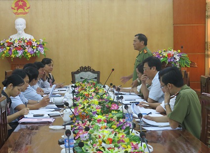 Đồng chí Trần Công Trường, UV BTV tỉnh ủy, Giám đốc Công an tỉnh phát biểu tại cuộc làm việc