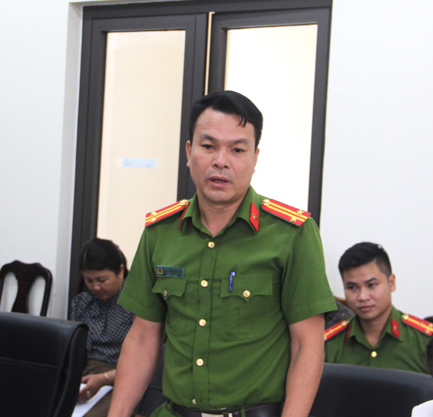 | Phó Trưởng Công an huyện Kỳ Anh Phạm Văn Hùng báo cáo về việc chấp hành pháp luật trong việc thi hành án treo, cải tạo không giam giữ tại địa phương giai đoạn 2020-2022 trên địa bàn |