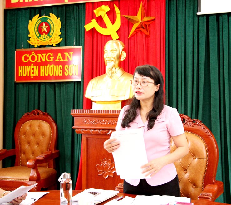 Phát biểu tại cuộc làm việc, thành viên Ban Pháp chế HĐND tỉnh, Chủ nhiệm Ủy ban Kiểm tra Tỉnh ủy Nguyễn Thị Gái cho rằng, Hương Sơn là địa bàn có tình hình tội phạm diễn biến phức tạp do đó cần phát huy vai trò của quần chúng Nhân dân, các cơ quan, tổ chức trong tố giác, tin báo tội phạm để ổn định tình hình nhằm phát triển kinh tế - xã hội bền vững. VKS, Công an huyện cần tiếp tục tăng cường công tác phối hợp với các cơ quan, tổ chức trên địa bàn để thực thi tốt nhiệm vụ được giao. UBND huyện Hương Sơn và các đơn vị liên quan cần tiếp tục tháo gỡ những khó khăn, vướng mắc của các cơ quan thực thi pháp luật trên địa bàn.