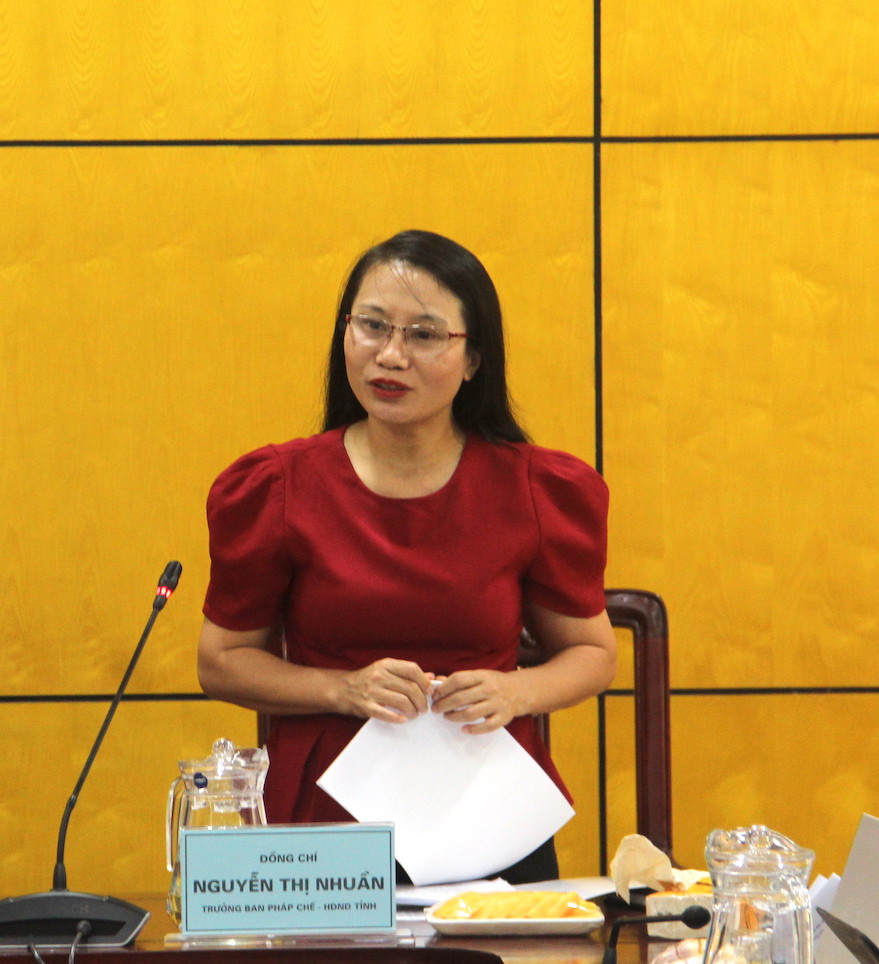 Kết luận cuộc làm việc, Trưởng ban Pháp chế HĐND tỉnh Nguyễn Thị Nhuần ánh giá cao những nỗ lực, cố gắng của Sở Tài nguyên và Môi trường về xử lý vi phạm hành chính trong lĩnh vực tài nguyên và môi trường.