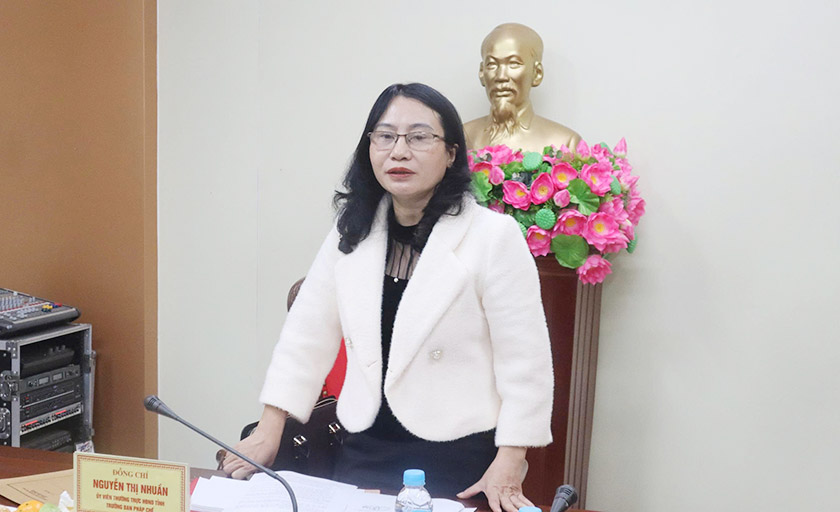Trưởng ban Pháp chế HĐND tỉnh Nguyễn Thị Nhuần kết luận tại cuộc làm việc