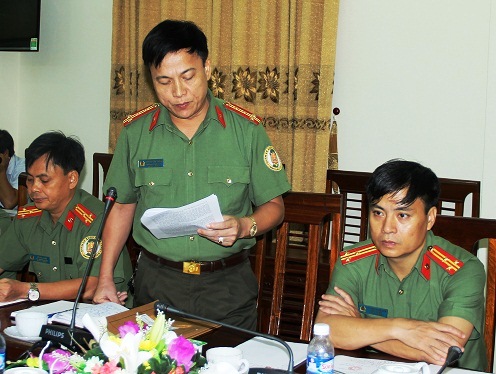 | Đại tá Nguyễn Đức Thuận - Trưởng phòng Quản lý XNC báo cáo |