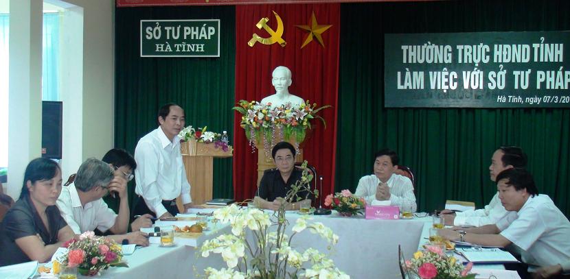 Ngày 07/3/2012, Thường trực HĐND tỉnh đã làm việc với Sở Tư pháp đẻ giám sát về công tác Tư pháp năm 2011 và phương hướng nhiệm vụ năm 2012. Tham dự có đồng chí đồng chí Nguyễn Thiện – UVBTV Tỉnh ủy,Phó Chủ tịch UBND tỉnh, các thành viên Ban Pháp chế,Trưởng các Ban HĐND tỉnh, Chánh Văn phòng Đoàn ĐBQH và HĐND tỉnh; lãnh đạo sở Tư pháp, Phòng Tư pháp Thành phố. Đồng chí Tiều Đình Duy, UVBTV Tỉnh ủy, Phó chủ tịch HĐND tỉnh, Nguyễn Trọng Nhiệu -Trưởng Ban Pháp chế HĐND tỉnh chủ trì cuộc làm việc.