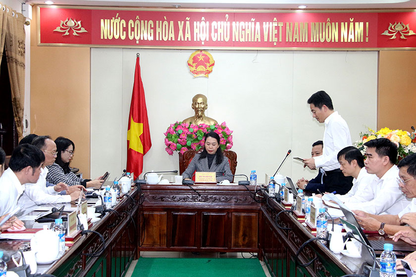 Trưởng ban Văn hóa - Xã hội HĐND tỉnh Đào Thị Anh Nga chủ trì cuộc làm việc