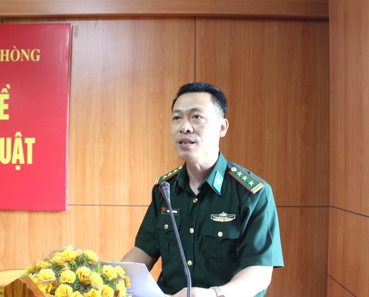 Thượng tá Phạm Lê Xuân Bình - Phó Tham mưu trưởng BĐBP Hà Tĩnh tham gia góp ý vào các nội dung có liên quan đến chức năng, nhiệm vụ, quyền hạn của BĐBP |