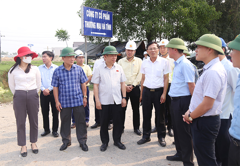 | Đoàn khảo sát nút giao Km489+300 quốc lộ 1 với đường dân sinh ở xã Vượng Lộc, huyện Can Lộc |