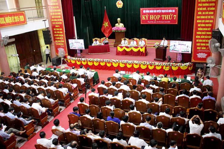 HĐND huyện Thạch Hà đã tổ chức Kỳ họp thứ 7 khóa XIX, nhiệm kỳ 2016- 2021 để đánh giá kết quả thực hiện các mục tiêu kinh tế- xã hội, quốc phòng - an ninh, công tác thu chi ngân sách, vốn đầu tư XDCB 6 tháng đầu năm, nhiệm vụ giải pháp 6 tháng cuối năm; Quyết toán thu chi ngân sách nhà nước năm 2018; Thông qua Đề án “Xây dựng huyện Thạch Hà cơ bản đạt chuẩn nông thôn mới giai đoạn năm 2019 - 2020” và thực hiện một số nhiệm vụ khác theo quy định của luật.