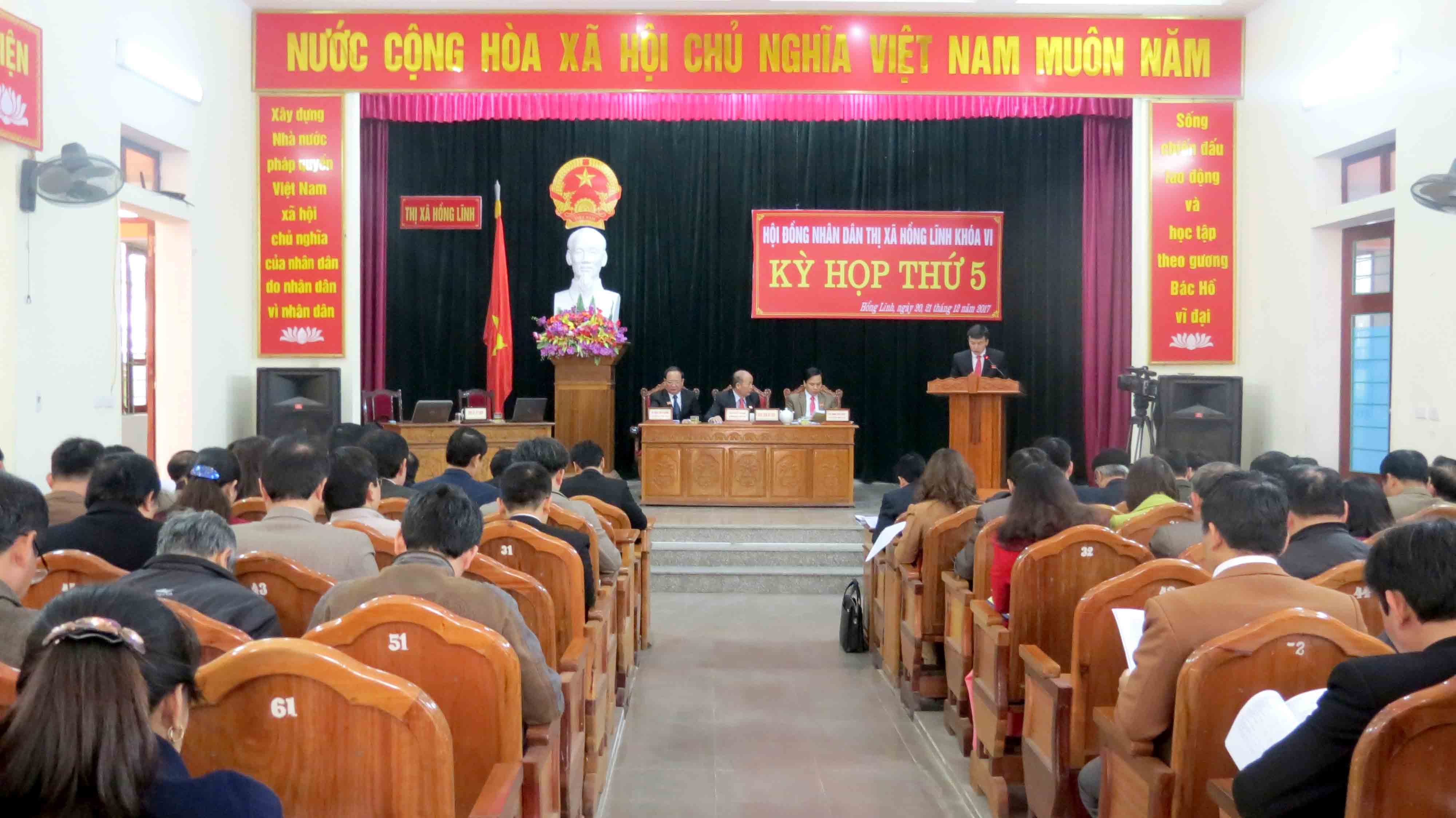 Vừa qua, HĐND thị xã Hồng Lĩnh khóa VI đã tổ chức trọng thể kỳ họp thứ 4 để đánh giá tình hình phát triển KT-XH, QP-AN, thu chi ngân sách năm 6 tháng đầu năm, nhiệm vụ, giải pháp 6 tháng cuối năm 2017 và bàn, quyết định nhiều nội dung quan trọng khác. Đồng chí Hoàng Trung Dũng - UV BTV Tỉnh ủy, Trưởng Ban Tuyên giáo Tỉnh ủy, Trưởng đoàn chỉ đạo của Tỉnh ủy tại Đảng bộ thị xã Hồng Lĩnh, đại biểu HĐND tỉnh được bầu trên địa bàn thị xã cùng các đại biểu Quốc hội, đại biểu HĐND tỉnh bầu tại thị xã Hồng Lĩnh; các đồng chí nguyên lãnh đạo cấp ủy, chính quyền Thị xã; các đồng chí trong Thường trực Thị ủy, Uỷ viên Ban Thường vụ Thị uỷ, Thường trực HĐND; UBND, UBMTTQ thị xã; đại diện lãnh đạo các phòng, ban, ngành, đoàn thể cấp thị; đại diện các doanh nghiệp, đơn vị sự nghiệp, Hiệp hội doanh nghiệp, tổ chức xã hội, đại diện Ủy ban đoàn kết Công giáo; đại diện Hội Phật giáo; đại diện cử tri khối công nghiệp, nông nghiệp; Bí thư Đảng uỷ, Thường trực HĐND, Chủ tịch UBND, Chủ tịch Ủy ban MTTQ các phường, xã đã về dự