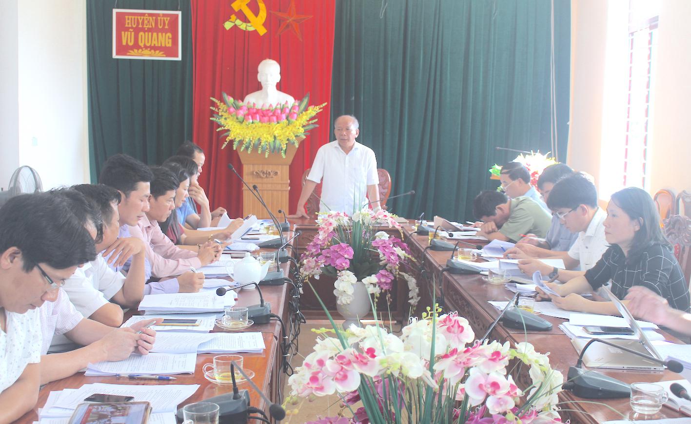 Thường trực HĐND huyện Vũ Quang vừa tổ chức Hội nghị liên tịch để bàn nội dung, chương trình chuẩn bị kỳ họp thứ 7 HĐND huyện khóa IV, nhiệm kỳ 2016 – 2021; nghe và cho ý kiến vào dự thảo các Đề án trình tại kỳ họp. Đồng chí Phạm Hữu Bình, Bí thư Huyện ủy, Chủ tịch HĐND huyện chủ trì Hội nghị