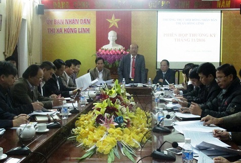 Sáng ngày 30/11/2016, Thường trực HĐND thị xã Hồng Lĩnh tổ chức phiên họp thường kỳ tháng 11 để đánh giá tình hình hoạt động của HĐND thị xã trong tháng 11, triển khai nhiệm vụ tháng 12 năm 2016; giám sát việc giải quyết kiến nghị của cử tri tại kỳ họp thứ nhất – HĐND thị xã khóa VI và nghe nội dung các tờ trình về ban hành các nghị quyết chuyên đề dự kiến trình ra kỳ họp thứ 2 – HĐND thị xã khóa VI. Tham dự có các đồng chí: Đặng Thanh Hải - Tỉnh ủy viên, Bí thư Thị ủy; Nguyễn Văn Hổ - Phó Bí thư Thị ủy, Chủ tịch UBND thị xã và PCT UBND thị xã; các đồng chí trong Thường trực HĐND thị xã, lãnh đạo các Ban HĐND thị xã; Tổ trưởng các Tổ đại biểu HĐND thị xã; đại diện lãnh đạo một số ban, ngành có liên quan.