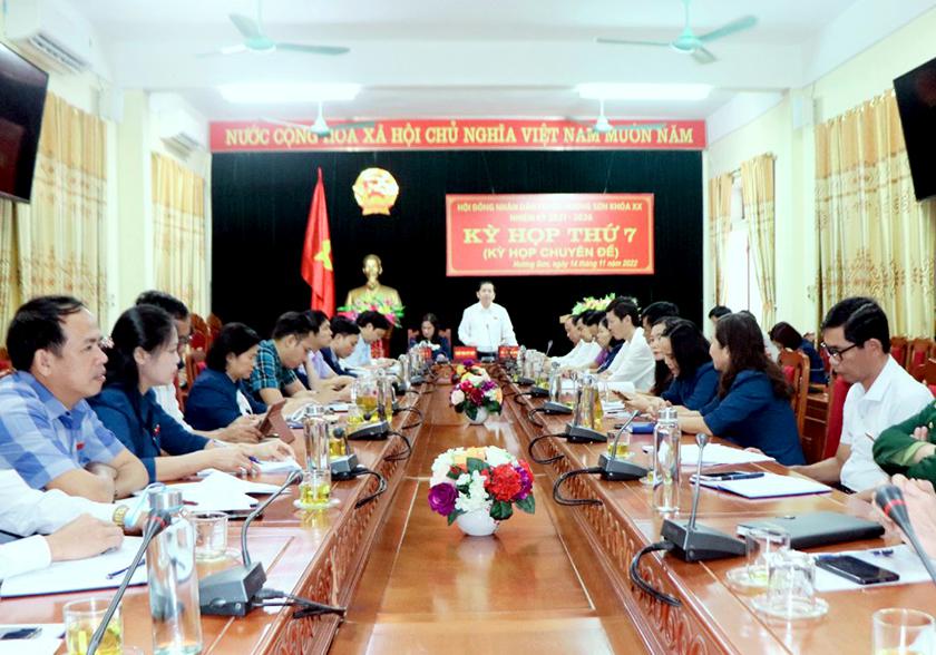 Hội đồng nhân dân (HĐND) huyện Hương Sơn khóa XX, nhiệm kỳ 2021 - 2026 đã tổ chức kỳ họp thứ 7 (kỳ họp chuyên đề) để xem xét một số nội dung thuộc thẩm quyền. Ông Bùi Nhân Sâm - TUV, Bí thư Huyện ủy, Chủ tịch HĐND huyện; bà Hà Thị Huyền - Phó Chủ tịch HĐND huyện điều hành kỳ họp.