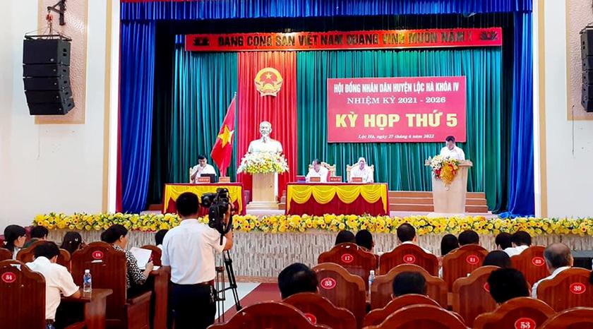 Sáng 27/6/2022, Hội đồng nhân dân (HĐND) huyện Lộc Hà tổ chức kỳ họp chuyên đề, các đồng chí: Nguyễn Thế Hoàn, Tỉnh ủy viên, Bí thư Huyện ủy, Lê Văn Vượng, Phó Chủ tịch HĐND huyện chủ trì kỳ họp.