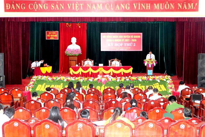 Sáng ngày 29/7/2021, HĐND huyện Vũ Quang khóa V, tổ chức kỳ họp thứ 2 để đánh giá kết quả thực hiện nhiệm vụ phát triển kinh tế - xã hội 6 tháng đầu năm và triển khai nhiệm vụ 6 tháng cuối năm 2021 và các báo cáo, tờ trình, dự thảo nghị quyết.
