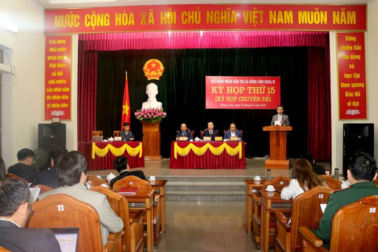 Sáng ngày 29/01/2021, Hội đồng nhân dân (HĐND) thị xã Hồng Lĩnh đã tổ chức kỳ họp thứ 15 - HĐND thị xã khóa VI (kỳ họp chuyên đề). Với sự thống nhất cao kỳ họp đã thông qua 6 nghị quyết trên các lĩnh vực. Cùng dự kỳ họp đồng chí Nguyễn Huy Hùng - Phó Bí thư Thị ủy, Chủ tịch UBND thị xã; Chủ tịch Ủy ban MTTQ thị xã; lãnh đạo các phòng, ngành liên quan và Bí thư, Chủ tịch UBND phường Bắc Hồng, Nam Hồng.