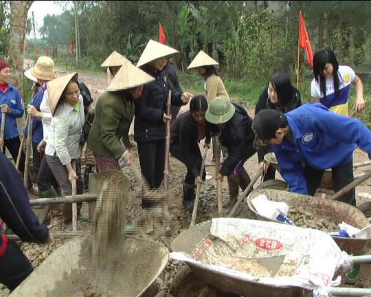 Nhân dân thôn Trung Trạm xã Cẩm Bình làm đường bê tông