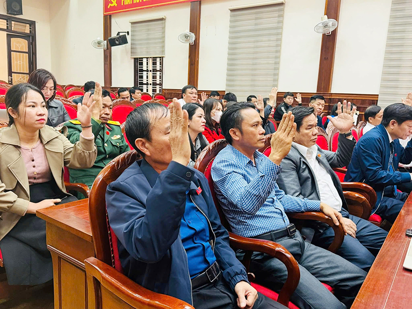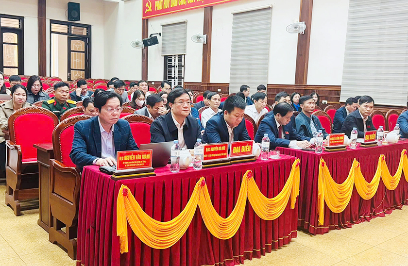 Tham dự có đồng chí Nguyễn Văn Thành - Uỷ viên BCH Đảng bộ tỉnh, Bí thư Huyện uỷ, đồng chí Nguyễn Bá Đức - Phó Bí thư Thường trực Huyện uỷ, đồng chí Hà Văn Bình - Phó Bí thư Huyện uỷ, Chủ tịch UBND huyện, các đồng chí trong BTV Huyện uỷ.