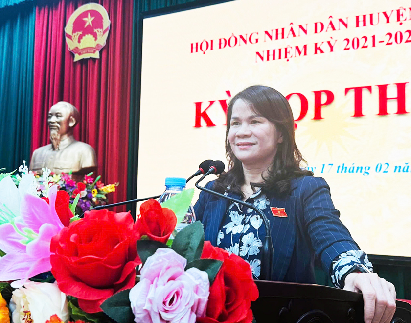 Phó chủ tịch Thường trực HĐND huyện Cẩm Xuyên Lưu Thị Tâm phát biểu khai mạc kỳ họp