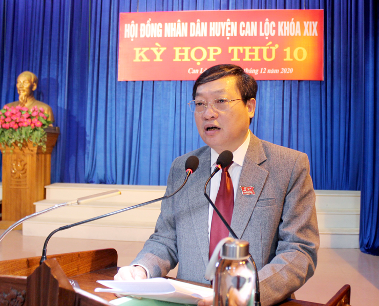 Bí thư Huyện ủy Can Lộc Nguyễn Như Dũng phát biểu tại kỳ họp thứ 10 HĐND huyện Can Lộc khóa XIX