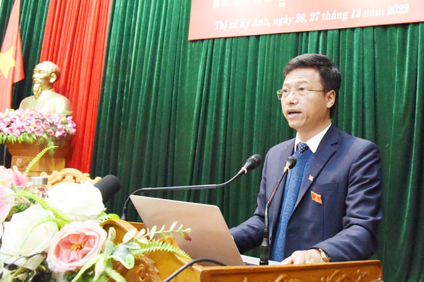 Phó Chủ tịch UBND thị xã Kỳ Anh Nguyễn Thế Anh thông qua báo cáo tình hình thực hiện kế hoạch phát triển kinh tế - xã hội, quốc phòng - an ninh năm 2022; mục tiêu, nhiệm vụ, giải pháp năm 2023 |