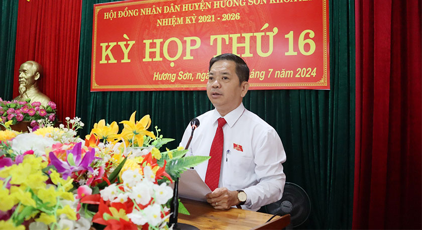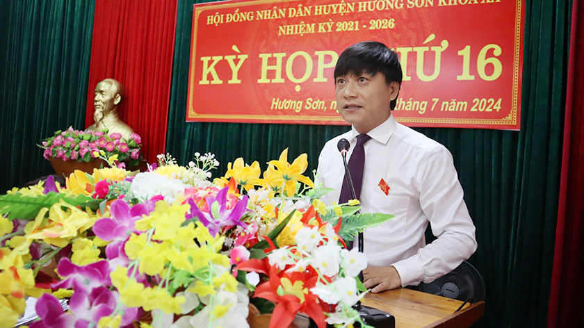 Phát biểu khai mạc kỳ họp, Bí thư Huyện ủy, Chủ tịch HĐND huyện Bùi Nhân Sâm nhấn mạnh: 6 tháng đầu năm, trong bối cảnh có nhiều khó khăn, thách thức nhưng được sự quan tâm của tỉnh, sự lãnh đạo, chỉ đạo quyết liệt của Huyện ủy, HĐND, UBND huyện và sự vào cuộc của cả hệ thống chính trị cùng Nhân dân trong huyện, Hương Sơn đã nỗ lực đạt được nhiều kết quả nổi bật. Kỳ họp thứ 16 là kỳ họp quan trọng, xem xét nhiều tờ trình, Nghị quyết trên nhiều lĩnh vực, vì vậy đề nghị các đại biểu phát huy dân chủ, trí tuệ, nêu cao tinh thần trách nhiệm trước cử tri và Nhân dân, thẳng thắn trong thảo luận, tranh luận, chất vấn và trả lời chất vấn nhằm chỉ ra khó khăn, hạn chế, nguyên nhân, nhất là nguyên nhân chủ quan, rút ra bài học kinh nghiệm, để từ đó đề ra các giải pháp, quyết định những chủ trương, nghị quyết sát, đúng, góp phần thực hiện thắng lợi các nhiệm vụ phát triển kinh tế - xã hội, quốc phòng, an ninh trong thời gian tới.