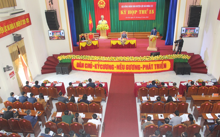 Báo cáo tại kỳ họp, huyện Lộc Hà đề ra các chỉ tiêu cơ bản trong năm 2021 như: Tăng trưởng tổng giá trị sản xuất 9,81%; thu nhập bình quân đầu người 37,5 triệu đồng; tổng giá trị đầu tư toàn xã hội 1.200 tỷ đồng, thu ngân sách trên địa bàn đạt 264 tỷ đồng.