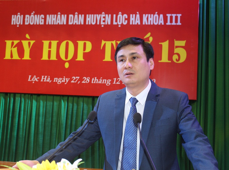| Bí thư huyện Lộc Hà Nguyễn Thế Hoàn phát biểu chỉ đạo tại kỳ họp thứ 15 HĐND huyện Lộc Hà khóa III |