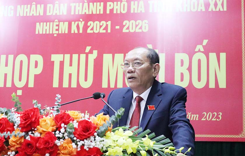 Tại kỳ họp đại biểu đã nghe Phó Chủ tịch UBND TP Hà Tĩnh Lê Quang Đức trình bày báo cáo kết quả thực hiện nhiệm vụ phát triển kinh tế - xã hội, quốc phòng - an ninh năm 2023 và quyết định mục tiêu, giải pháp thực hiện nhiệm vụ năm 2024.