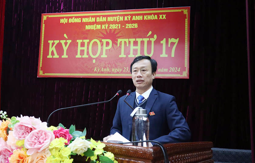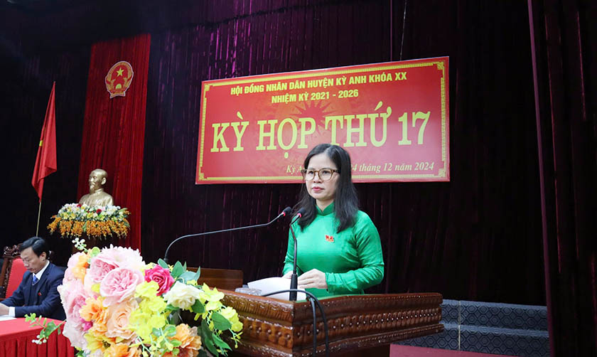 Tại kỳ họp đại biểu đã nghe Phó Chủ tịch UBND huyện Kỳ Anh Dương Vân Anh trình bày báo cáo kết quả thực hiện nhiệm vụ phát triển kinh tế - xã hội, quốc phòng - an ninh năm 2024 và quyết định mục tiêu, giải pháp thực hiện nhiệm vụ năm 2025.