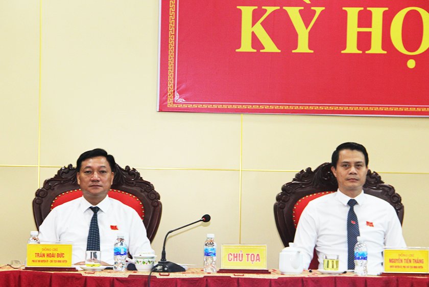 Phó Bí thư huyện ủy – Chủ tịch HĐND huyện Đức Thọ Trần Hoài Đức và Phó Chủ tịch HĐND huyện Đức Thọ Nguyễn Tiến Thắng chủ trì kỳ họp. |