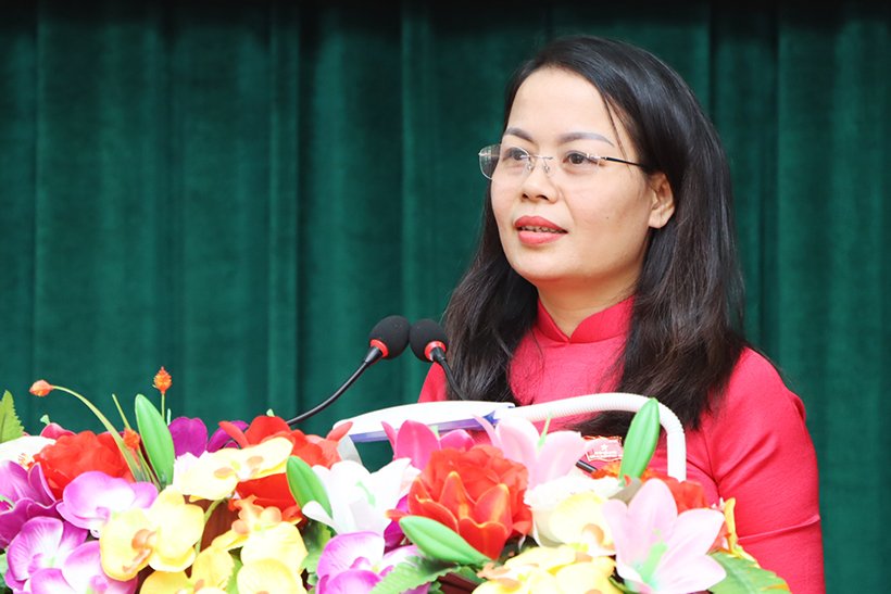 | Phó Bí thư Thường trực Huyện ủy - Chủ tịch HĐND huyện Cẩm Xuyên Hà Thị Việt Ánh phát biểu khai mạc tại kỳ họp thứ 6, HĐND huyện Cẩm Xuyên khóa XX, nhiệm kỳ 2021 – 2026 |