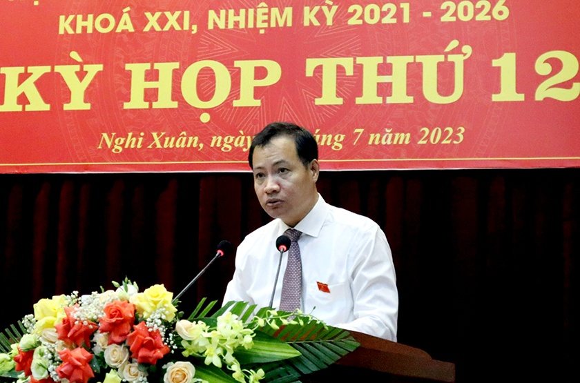 Phát biểu khai mạc kỳ họp, Phó Bí thư Thường trực Huyện ủy, Chủ tịch HĐND huyện Nguyễn Văn Hiếu nhấn mạnh: 6 tháng đầu năm, trong bối cảnh có nhiều khó khăn, thách thức nhưng được sự quan tâm của tỉnh, sự lãnh đạo, chỉ đạo quyết liệt của Huyện ủy, HĐND, UBND huyện và sự vào cuộc của cả hệ thống chính trị cùng Nhân dân trong huyện, Nghi Xuân đã nỗ lực đạt được nhiều kết quả nổi bật. Kỳ họp thứ 12 là kỳ họp quan trọng, xem xét nhiều tờ trình, Nghị quyết trên nhiều lĩnh vực, vì vậy đề nghị các đại biểu phát huy dân chủ, trí tuệ, nêu cao tinh thần trách nhiệm trước cử tri và Nhân dân, thẳng thắn trong thảo luận, tranh luận, chất vấn và trả lời chất vấn nhằm chỉ ra khó khăn, hạn chế, nguyên nhân, nhất là nguyên nhân chủ quan, rút ra bài học kinh nghiệm, để từ đó đề ra các giải pháp, quyết định những chủ trương, nghị quyết sát, đúng, góp phần thực hiện thắng lợi các nhiệm vụ phát triển kinh tế - xã hội, quốc phòng, an ninh trong thời gian tới.