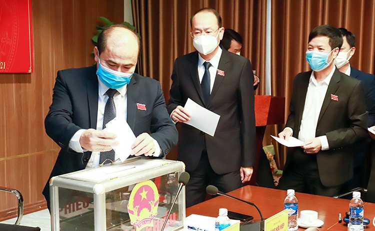 | Các đại biểu bỏ phiếu bầu chức danh Chủ tịch UBND huyện Nghi Xuân khoá XXI |