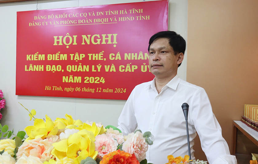 Phát biểu tại Hội nghị, Phó Bí thư Thường trực Đảng ủy Khối các cơ quan và doanh nghiệp tỉnh Nguyễn Thị Hà Tân đánh giá cao về công tác chuẩn bị, tổ chức kiểm điểm nghiêm túc, đúng quy định; các ý kiến phát biểu tâm huyết, trách nhiệm và thẳng thắn, chính kiến rõ ràng. Ghi nhận, biểu dương những kết quả đạt được của Đảng bộ Văn phòng Đoàn ĐBQH và HĐND tỉnh trong năm qua, đặc biệt là việc chấp hành nghiêm Điều lệ Đảng, các nguyên tắc, duy trì sinh hoạt Đảng đều đặn, chất lượng; vai trò trách nhiệm lãnh đạo của cấp ủy và từng đảng viên trong công tác tham mưu, phục vụ hoạt động của cơ quan dân cử, góp phần tích cực vào nhiệm vụ chính trị chung của tỉnh.