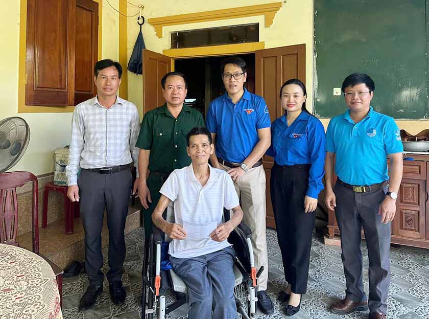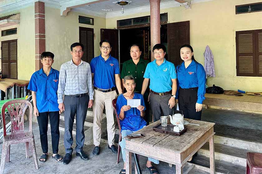 Đoàn viên chi Đoàn trao quà cho các đối tượng có công với cách mạng.