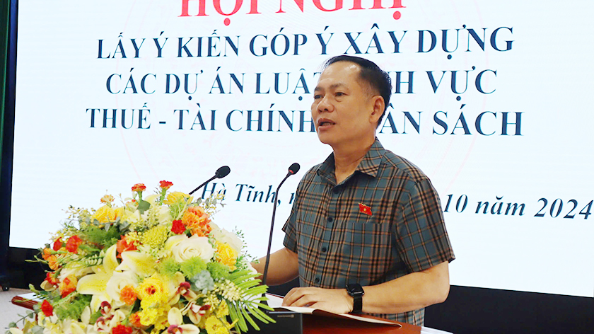 Chiều 14/10, Đoàn ĐBQH tỉnh Hà Tĩnh tiếp tục tổ chức hội nghị lấy ý kiến góp ý xây dựng các dự án Luật lĩnh vực Thuế - Tài chính, ngân sách tại Cục Thuế tỉnh. Phó Trưởng đoàn chuyên trách Đoàn ĐBQH tỉnh Trần Đình Gia; Cục trưởng Cục Thuế tỉnh Trương Quang Long và Giám đốc Sở Tài chính Trịnh Văn Ngọc chủ trì hội nghị.