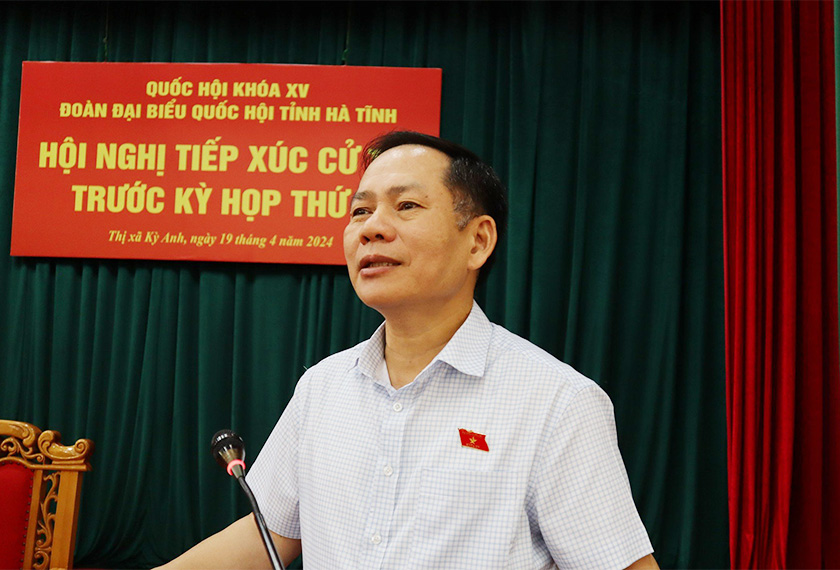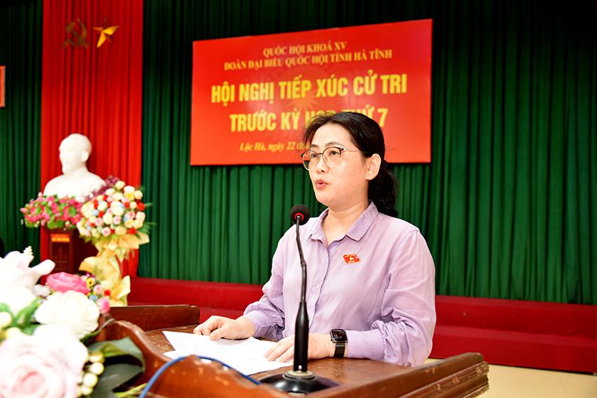 Chuẩn bị cho Kỳ họp thứ 7, Quốc hội khóa XV, sáng 19/4, Ủy viên Ban Chấp hành Đảng bộ tỉnh, Phó Trưởng đoàn chuyên trách Đoàn Đại biểu Quốc hội (ĐBQH) tỉnh Trần Đình Gia và Ủy viên chuyên trách Ủy ban Kinh tế của Quốc hội Bùi Thị Quỳnh Thơ tại Hội trường UBND phường Kỳ Liên đã tiến hành tiếp xúc cử tri