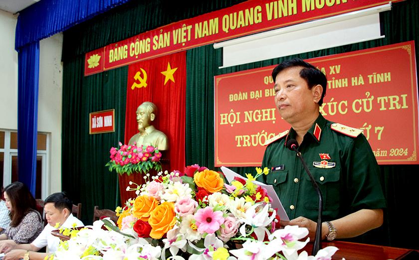Sáng 22/4/2024, Trung tướng Hà Thọ Bình, Tư lệnh Quân khu 4, đại biểu Quốc hội khóa XV, Ủy viên Ủy ban Quốc phòng và An ninh của Quốc hội và Phó Trưởng đoàn ĐBQH tỉnh Trần Đình Gia đã tiếp xúc cử tri tại xã Sơn Ninh, huyện Hương Sơn. Cùng dự có lãnh đạo các Ban HĐND tỉnh, Ban Thường trực Ủy ban MTTQ tỉnh, các sở: Giao thông Vận tải, Giao thông Vận tải, Kế hoạch Đầu tư, Tài nguyên và Môi trường, Giáo dục và Đào tạo, Bộ Chỉ huy quân sự tỉnh và lãnh đạo Huyện ủy, HĐND, UBND, Ủy ban MTTQ huyện Hương Sơn.