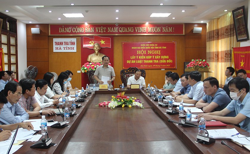 Chuẩn bị nội dung kỳ họp thứ ba, Quốc hội khoá XV, chiều ngày 09/5/2022, Đoàn đại biểu Quốc hội phối hợp với Thanh tra tỉnh tổ chức Hội nghị lấy ý kiến góp ý xây dựng Dự án Luật Thanh tra (sửa đổi). Phó Trưởng đoàn chuyên trách Đoàn Đại biểu Quốc hội tỉnh Trần Đình Gia và Chánh Thanh tra tỉnh Võ Văn Phúc chủ trì hội nghị