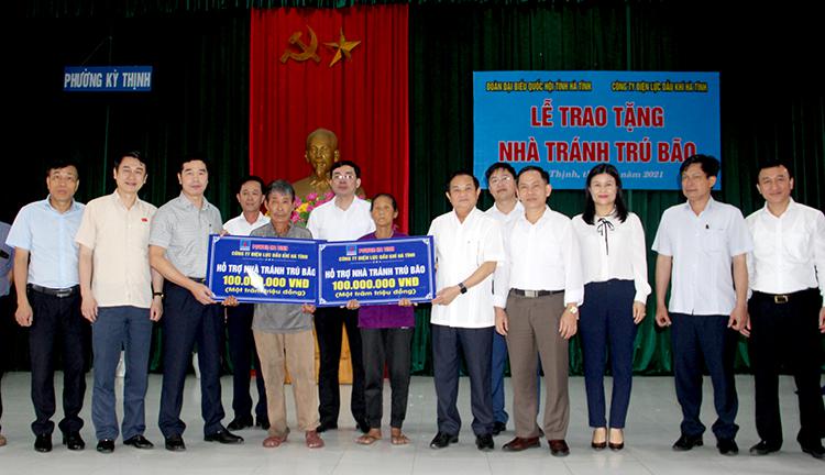 Hưởng ứng Phong trào “Đền ơn đáp nghĩa” và “Cả nước chung tay vì người nghèo - không để ai bị bỏ lại phía sau”, sáng ngày 27/4, Đoàn đại biểu Quốc hội tỉnh phối hợp Công ty Điện lực Dầu khí Hà Tĩnh tổ chức Lễ trao tặng nhà tránh trú bão cho 02 gia đình có hoàn cảnh khó khăn tại tổ dân phố Tây Yên, Phường Kỳ Thịnh, thị xã Kỳ Anh. Tham dự có đồng chí Phó Trưởng Đoàn phụ trách Đoàn ĐBQH Nguyễn Văn Sơn và Ủy viên Thường trực Ủy ban Đối ngoại của Quốc hội Lê Anh Tuấn; đại diện Ban giám đốc, các phòng, ban, đơn vị liên quan thuộc Công ty Điện lực Dầu khí Hà Tĩnh.