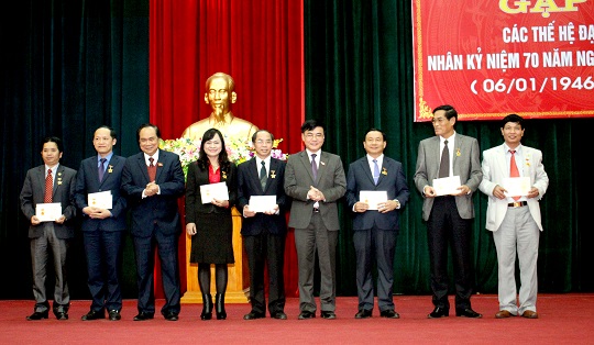 Chiều 4/01/2016, Đoàn đại biểu Quốc hội tỉnh tổ chức buổi lễ gặp mặt nhân dịp kỷ niệm 70 năm ngày Tổng tuyển cử đầu tiên (6/01/1946 - 6/01/2016). Tham dự buổi lễ, về phía Trung ương có các đồng chí: Nguyễn Văn Phúc - Phó Chủ nhiệm Ủy Ban Kinh tế Quốc hội, Trần Ngọc Tăng - Ủy viên Ủy Ban các vấn đề xã hội của Quốc hội; Về phía tỉnh ta có các đồng chí: Lê Đình Sơn - Bí thư Tỉnh ủy, Chủ tịch UBND tỉnh; Trần Nam Hồng - Phó Bí thư Thường trực Tỉnh ủy; các đồng chí trong Ban thường vụ Tỉnh ủy; Thường trực HĐND, UBND tỉnh; các vị Đại biểu Quốc hội qua các thời kỳ đang sống trên địa bàn tỉnh và đại diện Lãnh đạo các Sở, ban ngành và 13 huyện, thị xã và thành phố.
