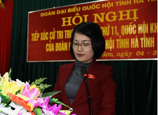 Sáng ngày 3/3/2016, Đoàn ĐBQH tỉnh có buổi tiếp xúc với cử tri huyện Hương Khê trước kỳ họp thứ 11 Quốc hội khóa XIII. Tham dự các buổi tiếp xúc có các đại biểu: Trần Tiến Dũng - Phó Trưởng đoàn ĐBQH tỉnh; Phạm Thị Phương - Ủy viên Uỷ ban Khoa học, Công nghệ và Môi trường của Quốc hội; đại diện Lãnh đạo Văn phòng Đoàn ĐBQH và HĐND tỉnh; các đồng chí trong Thường trực huyện ủy, HĐND, UBND, Ủy ban MTTQ và các ban, ngành và đông đảo bà con cử tri trên toàn huyện Hương Khê.