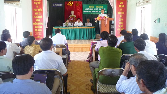 Sáng 25-4, tại hội trường UBND xã Thạch Liên, Đoàn ĐBQH tỉnh đã tổ chức hội nghị tiếp xúc với cử tri 11 xã phía Bắc huyện Thạch Hà. Dự buổi tiếp xúc có Phó Bí thư Tỉnh ủy, Chủ tịch UBND tỉnh, Trưởng Đoàn ĐBQH tỉnh Võ Kim Cự.