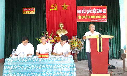 Chiều 24-4, Đoàn ĐBQH tỉnh đã tổ chức hội nghị tiếp xúc cử tri thôn Tân Tiến, xã Trường Lộc (Can Lộc) để lấy ý kiến góp ý vào nội dung, chương trình kỳ họp thứ 5 (Quốc hội khóa XIII).