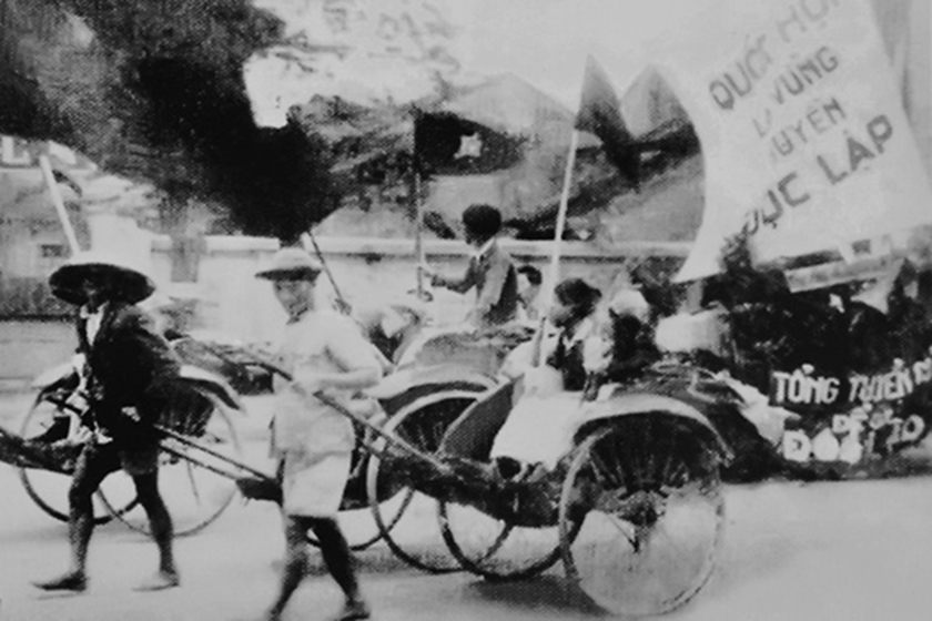 | Nhân dân lao động Hà Nội cổ động cho Tổng tuyển cử ngày 6/1/1946. Ảnh tư liệu |